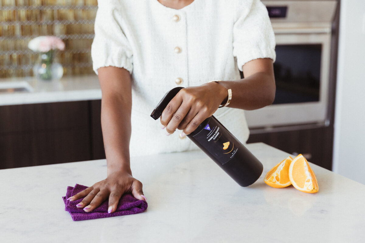 Use your favorite non-toxic all-purpose cleaner to refresh surfaces quickly. Reset one room at a time, and permit yourself not to finish everything the same night.
